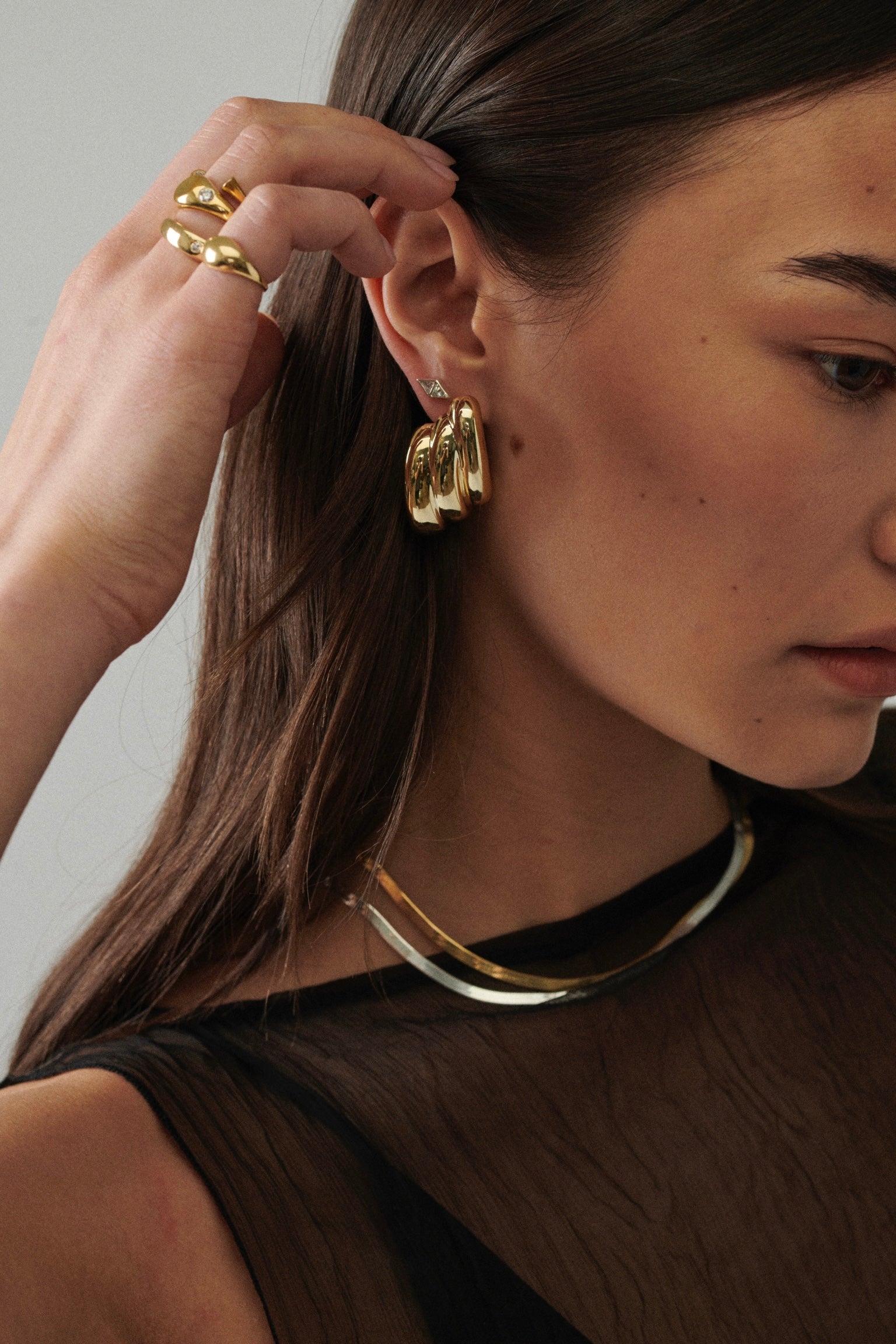 This collection is handpicked by MÉGA founder and creative director Dani—pieces she reaches for daily, wears on set, and styles with everything. These are her forever go-to’s: signature earrings, layering necklaces, and sculptural rings that strike the perfect balance of strength, simplicity, and ease.