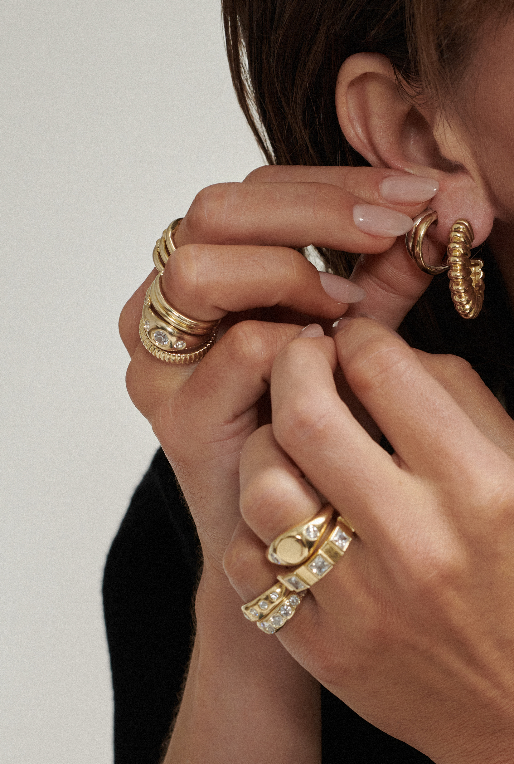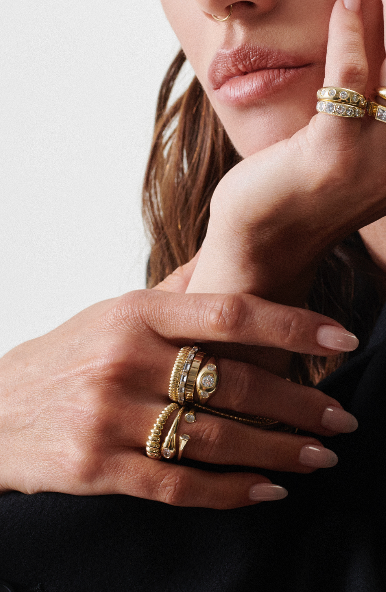 Each style reflects her distinct approach to jewelry: polished but personal, chic without trying too hard, and always built to stack.